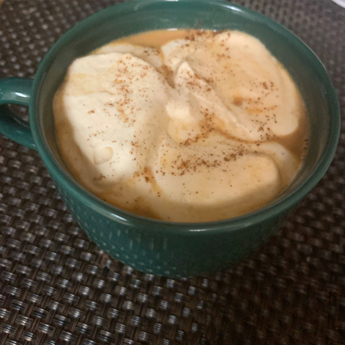 Warm up a cold day with a mug of hot apple cider topped with a hint of caramel.